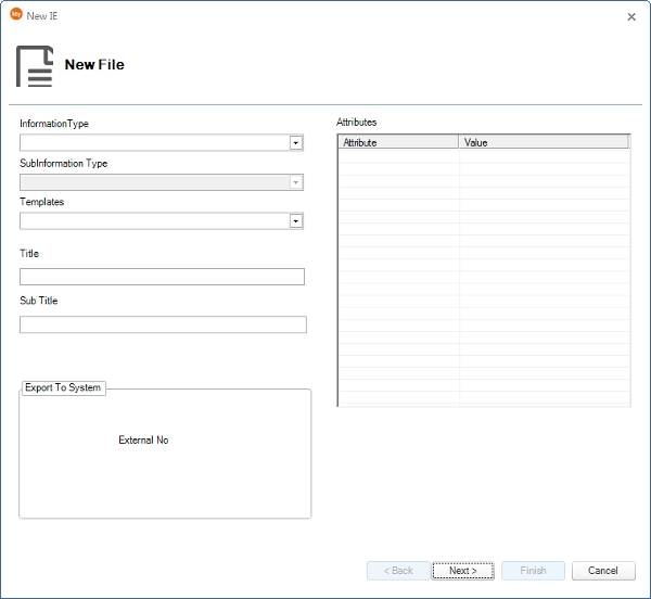 • In current folder, select Content menu  New IE  New File