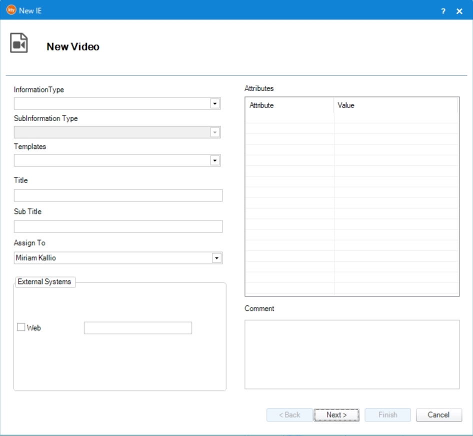 • In current folder, select Content menu  New IE  New Video