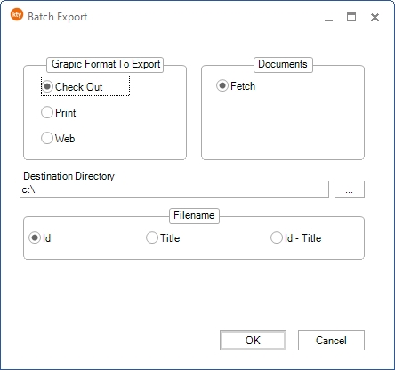 Format Description Id Filename: [id].[extension] => G0123456.ai Title Filename: [title].[extension] => graphic1.ai Id - Title Filename: [id]-[title].[extension] => D00112233-Hello World.xml
