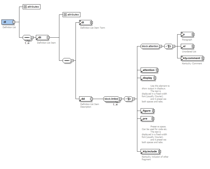The dl element is used for definition lists.