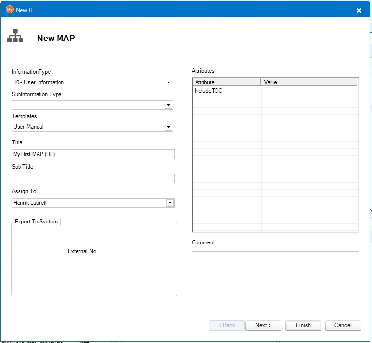 6. With your map still selected in the IE list, select Print in the Ribbon (top) menu. Select stylesheet and language. Click Publish. Your new manual should show up in front of you in a few seconds.